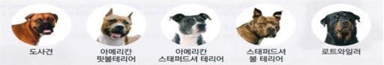 * 맹견 5종: 도사견, 아메리칸 핏불테리어, 아메리칸 스태퍼드셔테리어, 스태퍼드셔 불테리어, 로트와일러 및 그 잡종
