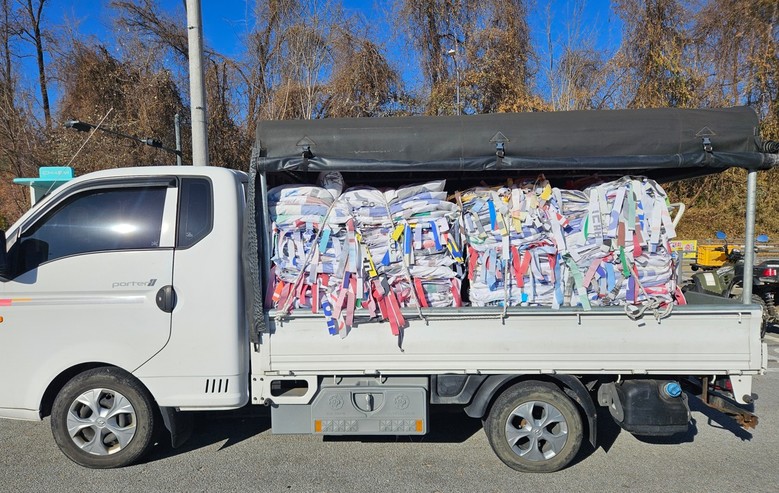 “폐현수막 재활용 사업” 추진으로는 지역 내 폐현수막을 수거하고 이를 원료로 가공해 에코백, 마대자루 15,000장을 제작하고 관내 읍·면·동행정복지센터 등 필요한 곳에 우선 보급하였다.