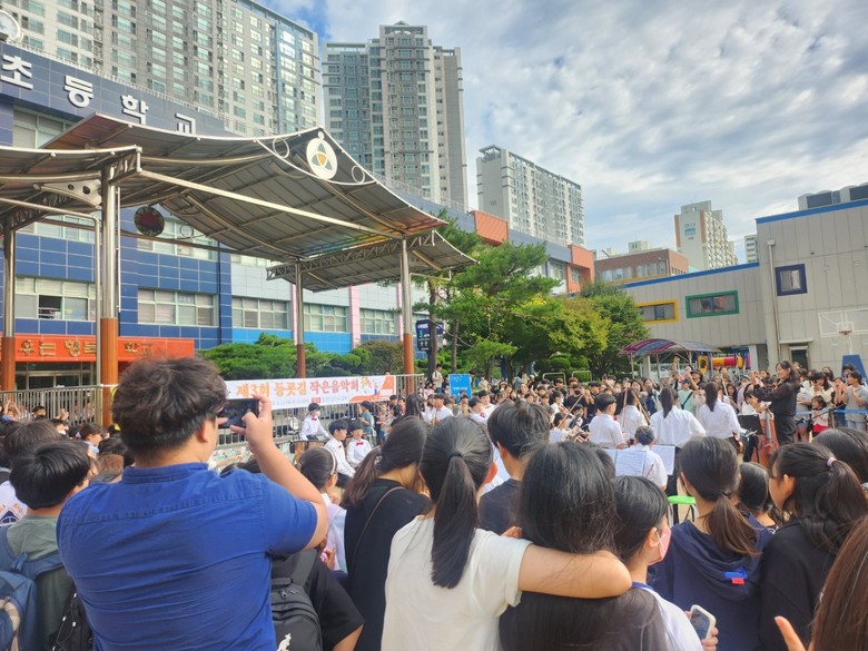 [광명시 세계타임즈=송민수 기자] 경기도 광명 소재 철산초등학교(교장 이태우)는 9월 21일 오전 8시 30분 《광명의 푸른 숲 오케스트라》가 연주하는 ‘제3회 등굣길 작은 음악회’를 개최하였다. 광명 관내 초등학생들(광명광덕초, 광명광성초, 구름산초, 안현초, 철산초)로 구성된《광명의 푸른 숲 오케스트라》는 단장 조은영(철산초 교사), 반주 조현미(철산초 교사) 선생님이 3년 이상 맡아 지도중이다. 이처럼《광명의 푸른 숲 오케스트라》는 철산초를 거점으로, 문화예술 교육활동에 흥미와 열정을 가진 광명 지역 내 초등학생들이 자발적으로 참여하고 있는 광명교육지원청 소속의 학생 문화예술 동아리다.