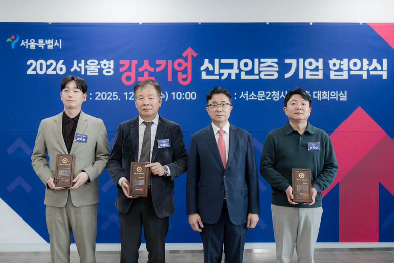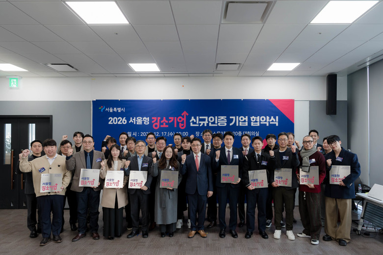서울시는 지난 9월 ‘2026년 서울형 강소기업’으로 신규 인증한 48개사와 청년 정규직 채용 확대 및 일·생활 균형이 가능한 근무환경 조성을 약속하는 「2026년 서울형 강소기업 신규 인증 협약식」을 12월 17일(수) 서울시청 서소문2청사에서 개최했다고 밝혔다.