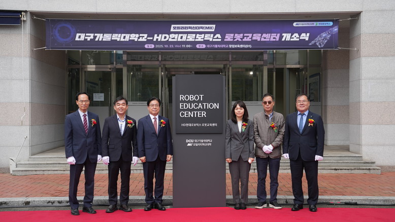 - 대구가톨릭대학교-대구대학교-영남대학교 연합, 모빌리티혁신대학 미래차 선도 - [세계타임즈=경북 한윤석 기자] 경상북도는 22일 대구가톨릭대학교에서 ‘대구가톨릭대학교-HD현대로보틱스 로봇교육센터 개소식’을 개최했다.