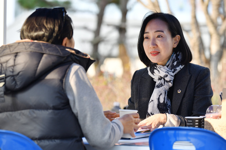 지난 2023년 11월 의정보고회 개최 이후 더 많은 시민을 만나기 위해 지난해부터 11월이면 야외에 아침부터 저녁까지 파라솔을 펴고 주민과 당원을 만나는 자리를 마련하고 있다.