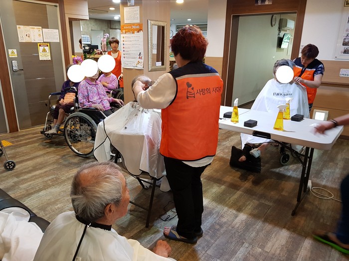 오정동 이순옥 헤어샆 원장은 “약 2시간동안 치매 어르신들을 위한 미용봉사가 쉬운 일은 아니지만, 부모님을 생각하면서 정성을 다해서 미용봉사를 했다.“고 말했다.