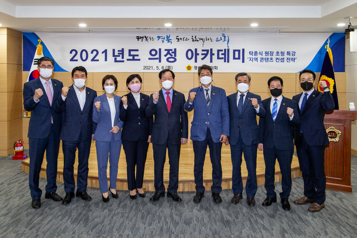 5월 6일(목) 제323회 임시회 폐회 후 도의회 세미나실에서 개최된 특강은 탁훈식 한국공공마케팅연구원 원장을 초청하여 세상의 변화에 따른 정책의 대응과 고민을 함께하고, 국내외 다양한 콘텐츠 사례를 통해 경상북도와 시·군의 지역별 차별화 전략에 대한 정책적 의견을 함께하는 시간을 가졌다.