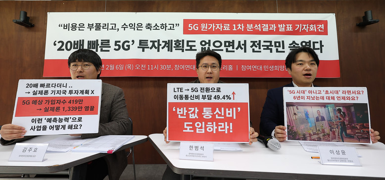 한범석 참여연대 민생희망본부 통신소비자분과장은 "애초부터 28㎓ 기지국 투자 계획이 있었는지 의문"이라고 말했다.참여연대는 5G 인가를 담당했던 과학기술정보통신부 담당자에 대한 감사 및 문책과 통신 요금 적정성 평가 개선을 위한 전기통신사업법 개정 등을 주문했다.