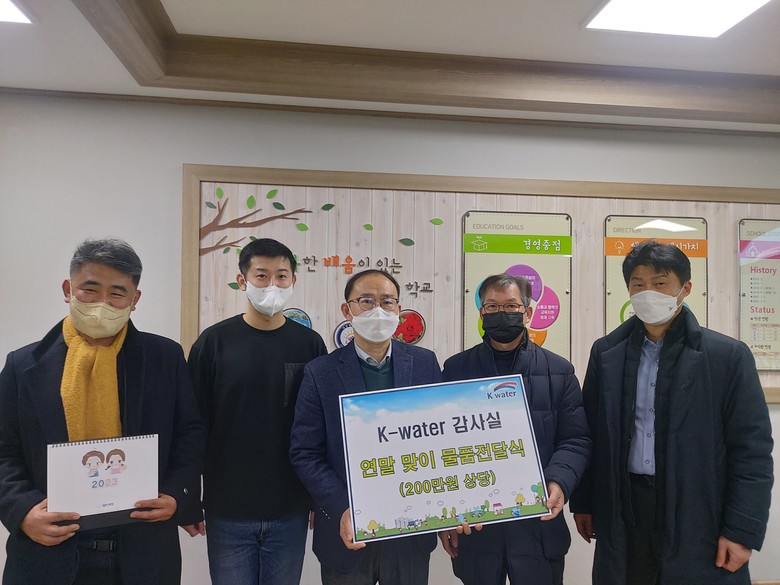 한국수자원공사 강래구 상임감사위원은 “이번 나눔이 학업이 어려운 우리 지역의 학생들을 지원하는데 조금이나마 보탬이 되길 바란다”라며, “한국수자원공사 감사실은 앞으로도 지역의 취약계층 지원을 위한 따뜻한 나눔 활동을 꾸준히 이어가겠다”라고 밝혔다.