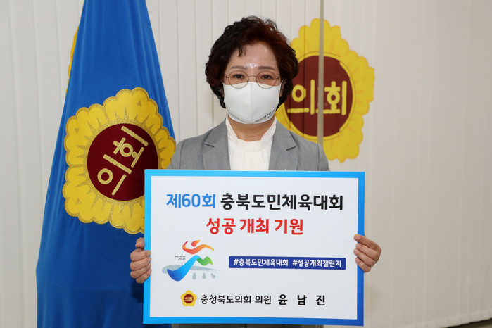 윤남진 의원은 이날‘제60회 충북도민체육대회 성공 개최 기원’이 적힌 피켓을 들고 찍은 인증사진과 응원메시지를 페이스북에 게시하며 챌린지에 참여했다.