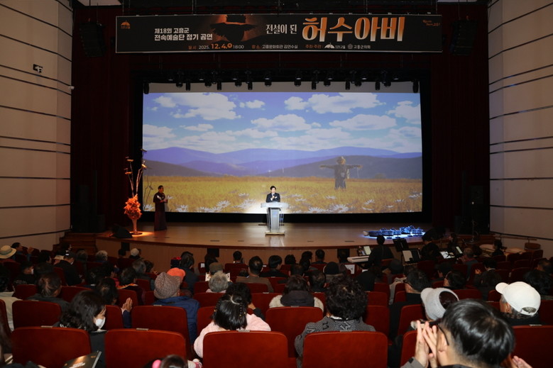 [고흥군 세계타임즈=우덕현 기자] 고흥군(군수 공영민)은 지난 4일 고흥문화회관 김연수실에서 열린 제18회 고흥군 전속예술단 정기공연‘전설이 된 허수아비’가 500여 명의 관객들로부터 큰 호응을 얻으며 성황리에 마무리됐다고 밝혔다.