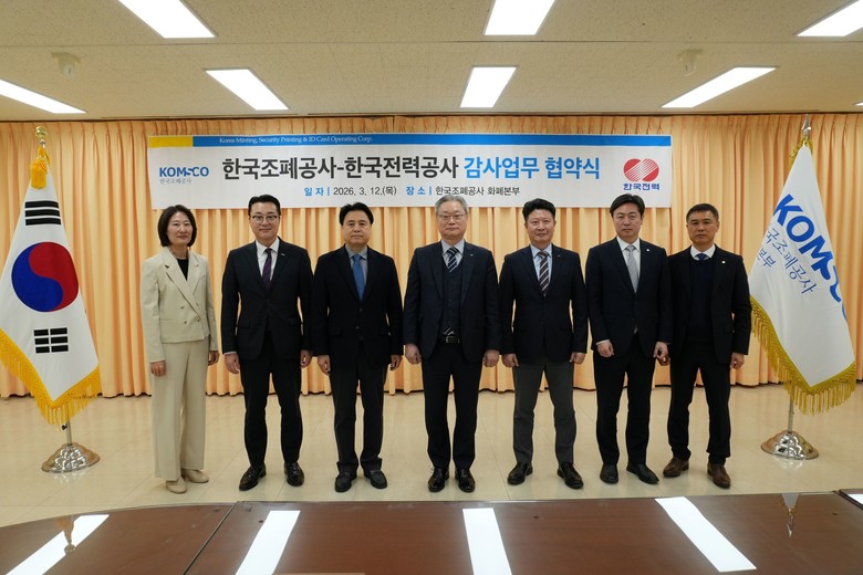 [세계타임즈 = 이영진 기자] 한국전력 감사실(상임감사위원 전영상, 이하 한전)이 3월 12일 한국조폐공사 감사실(상임감사 김범진)과 감사 전문성 제고와 내부통제 강화를 위한 업무협약(MOU)을 체결했다.