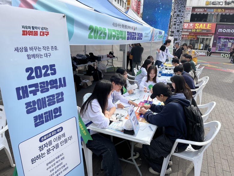 ▸ “이제야 장애인을 진정으로 이해하게 됐어요”… 시민 800여 명 감동 체험 [세계타임즈=대구 한윤석 기자] 대구광역시는 10월 24일(금) 오후 1시부터 동성로 28아트스퀘어에서 펼쳐진 ‘2025 대구광역시 장애공감 거리캠페인’을 시민들의 호응 속에 마쳤다.