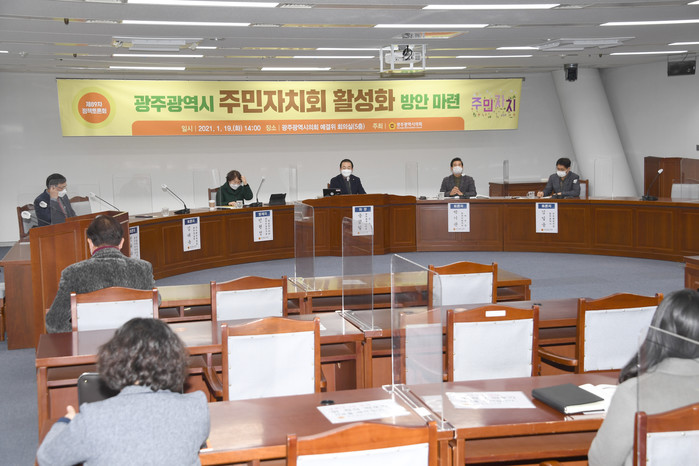 이날 토론회는 송형일 광주광역시의회 의원이 좌장을 맡아, 민현정 광주전남연구원 지역공동체문화연구 센터장, 김일융 광주시 자치행정국장, 박기관 한국지방자치학회장, 김태욱 광주경실련 자치분권위원장, 진귀수 광주시 주민자치협의회 사무국장 등이 발제자와 토론자로 참석했다.