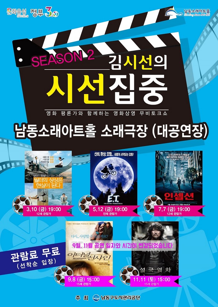 인천 남동소래아트홀 대공연장에서 무료영화를 관람 하고 영화평론가 김시선과 함께 영화 속 이야기를 다른 시선으로 생각해 보며 소통할 수 있는 시간이 마련된다.