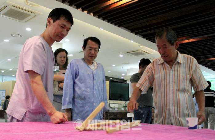 | ▲ © 세계타임즈 <병원 의료진과 환자가 윷놀이를 즐기고 있다.> |