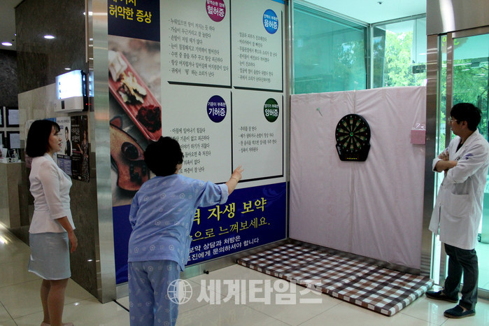 | ▲ © 세계타임즈 <병원 의료진과 환자가 다트게임을 즐기고 있다.> |