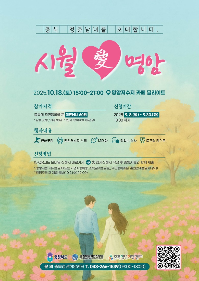 이번 행사는 충청북도가 주최하고 충청북도기업진흥원이 주관하는 충북 청춘만남 프로그램으로, 도내 청년들이 자연스럽게 교류하고 새로운 인연을 맺을 수 있는 장을 마련하기 위해 추진됐다.