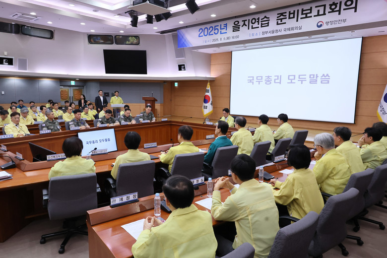 김민석 국무총리가 5일 서울 종로구 정부서울청사 별관에서 열린 을지연습 준비보고회의를 주재하고 있다. 2025.8.5