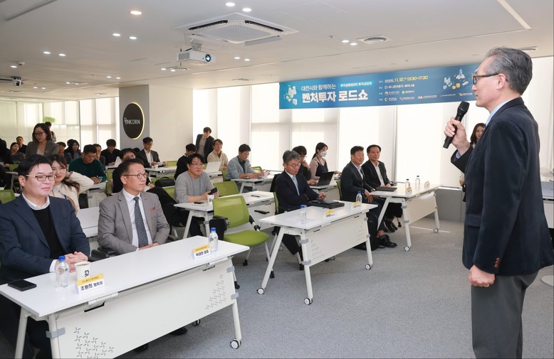 - 투자 네트워크 확대 및 역량 강화 등 글로벌 기업 성장 기대 - [세계타임즈=대전 이채봉 기자] 대전시와 한국벤처캐피탈협회(KVCA)는 12일 대전의 유망기업과 수도권 투자기관을 초청해 D-유니콘라운지에서 ‘벤처투자로드쇼’를 개최했다.