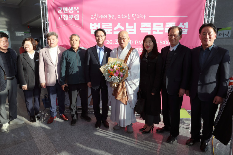 고창군수는 “이번 법륜스님의 즉문즉설은 군민들의 마음에 깊은 울림을 전하며 삶의 방향을 다시 생각해 보는 뜻깊은 시간이었다”며 “앞으로도 군민의 삶에 실질적인 힘이 되는 공감형 강연과 참여형 프로그램을 확대해 군민의 행복을 높여가겠다”고 말했다.