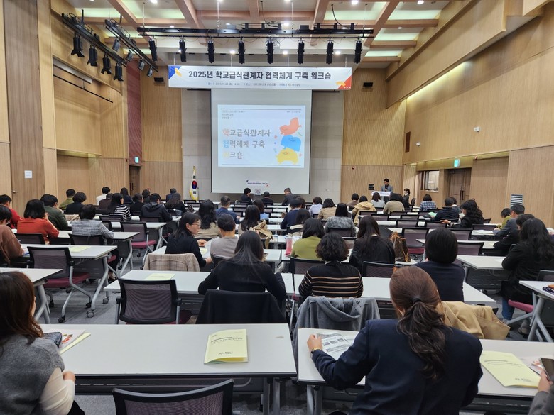 이번 워크숍은 도내 학교급식 정책 방향을 살피고 지역산 식재료 활용 확대 방안과 정책 개선 방안 등을 논의하고자 마련했다.