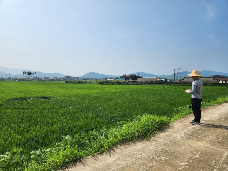 | ▲ 드론 활용 이삭거름 시용 현장 |
