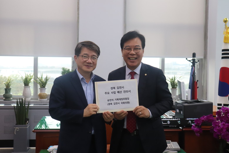 [세계타임즈 = 이채봉 기자] 송언석 국회 기획재정위원장(국민의힘, 경북 김천)은 7월25일, 김동일 기획재정부 예산실장을 만나, 2025년 정부 예산안에 김천 발전을 위한 중점 추진 사업 예산들을 충분히 반영해줄 것을 건의했다.