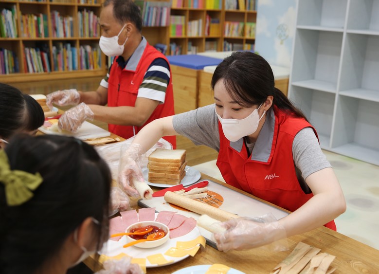 ABL생명 임직원들은 18일 서울 동작구 청운보육원에서 아동들의 창의활동을 지원하고 기관을 청소하는 봉사활동을 실시했다. 이날 임직원들은 초등학교 저학년 아동 21명과 함께 샌드위치를 만들고 아동들이 사용하는 주방, 놀이방 등을 청소하는 나눔활동을 전개했다.