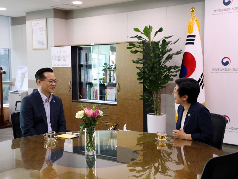 또 행복청을 방문해 이상래 청장과 만나. ‘행정수도 세종’ 완성을 위해 최선의 노력을 다해줄 것을 당부했다.