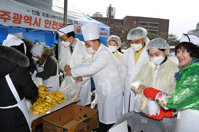 김동찬 의장을 비롯한 5개 상임위원장단 등 ‘광주시의회 코로나19 비상대책단’은 이날 소방학교에 격리 중인 시민들의 급식봉사와 현장 의료진과 방역요원 등 관리 인력과 자율봉사자들의 노고를 위로하고 위문품을 전달했다.