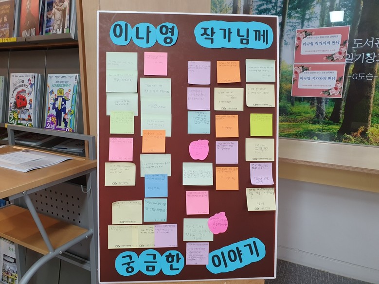 한순영 사서교사는 “우리 학생들의 눈높이에 맞춘 작품 설명과 따뜻한 위로의 메시지를 건네주신 작가님께 감사드린다”며 “읽걷쓰를 현장에서 실천하며 학생들이 책과 도서관을 통해 자신의 꿈과 상상력을 마음껏 펼칠 수 있도록 더욱 노력하겠다”라고 말했다.