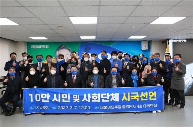 [세계타임즈 이채봉 기자]7일 낮12시 민주당 중앙당사 대회의실에서 '10만 시민 및 사회단체 대표 시국선언'이 발표되었다.