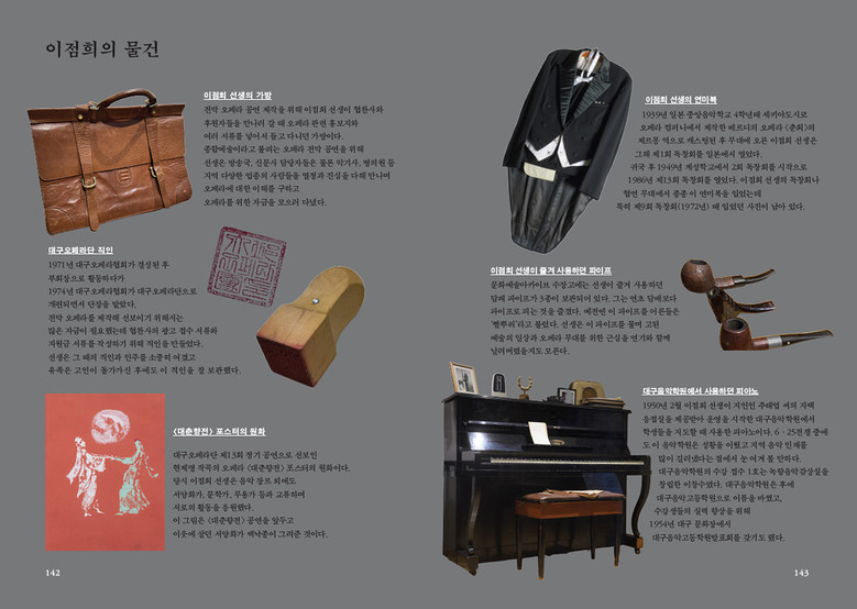 음악 입문기부터 성악가·교육자·오페라 운동가로서의 활동을 입체적으로 조명했으며, 관련 자료를 함께 수록해 지역 예술사의 중요한 흐름을 살폈다. 또한 ‘이점희의 발자취’, ‘이점희의 물건’, ‘이점희와 사람들’, ‘이점희와 대구음악 시간여행’ 등 다양한 코너를 통해 그의 생애 주기별 활동을 시간·공간·관계의 측면에서 폭넓게 소개한다.