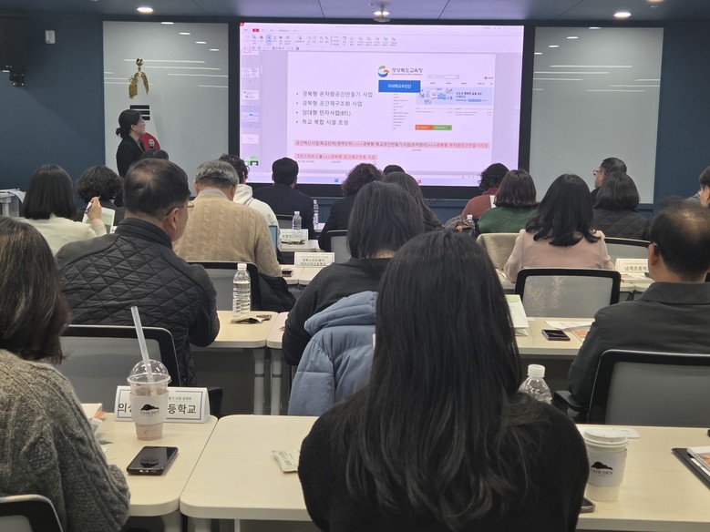 [경북 세계타임즈=한윤석 기자] 경북교육청(교육감 임종식)은 27일 예천군에 있는 경상북도인재개발원에서 2026년 경북형 온자람공간만들기 사업 선정교 학교별 관리자와 행정실장, 업무 담당자 등 60여 명이 참석한 가운데 사업설명회를 개최했다고 밝혔다.