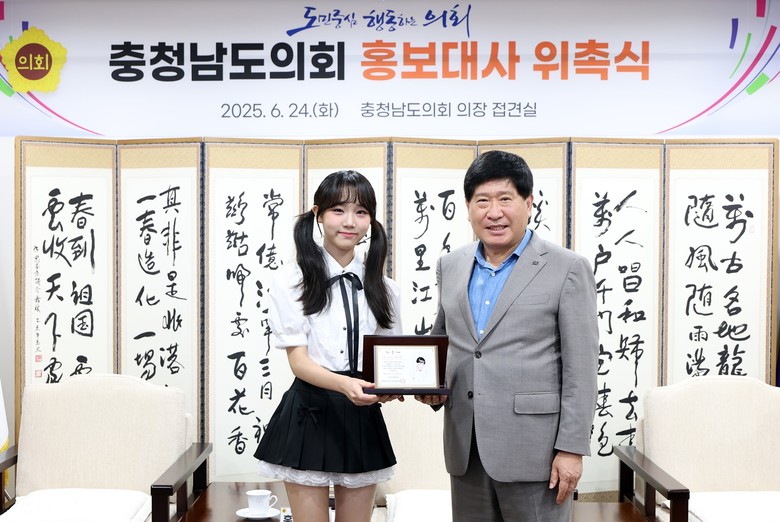 [충남 세계타임즈=이현진 기자] 충남도의회(의장 홍성현)는 의정활동 홍보 강화를 위해 충남을 대표하는 ‘트로트 신동’ 고아인 학생을 홍보대사로 위촉했다.