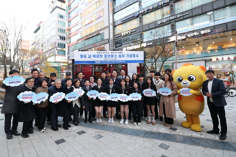 시는 28일 동탄 남광장에서 ‘동탄 남·북광장 흡연부스 설치 기념행사’를 개최했다. 동탄 남·북광장은 법정 금연구역은 아니지만 유동인구가 많아 흡연행위로 인한 비흡연자의 간접피해와 인근 상가의 불편이 지속되어 왔다.
