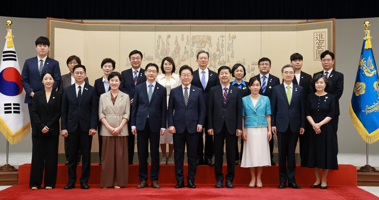 [세계타임즈 = 이채봉 기자] 이재명 대통령은 23일 국회 인사청문회를 거쳐 임명안이 재가된 신임 장관 8명에게 임명장을 수여했다.이날 오전 용산 대통령실에서 열린 임명장 및 위촉장 수여식에는 구윤철 기획재정부·배경훈 과학기술정보통신부·조현 외교부·정성호 법무부·윤호중 행정안전부·정은경 보건복지부·김성환 환경부·김영훈 고용노동부 장관 등이 참석했다.