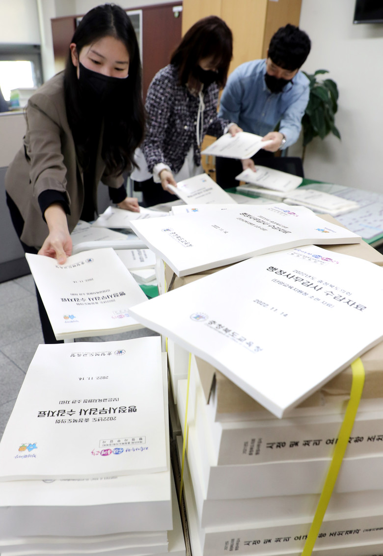 [충북 세계타임즈=이현진 기자] 2022년도 행정사무감사를 앞둔 2일 충북도의회사무처 직원들이 집행기관에서 보내온 자료들을 정리하며 분주한 모습을 보이고 있다,/충북도의회 제공