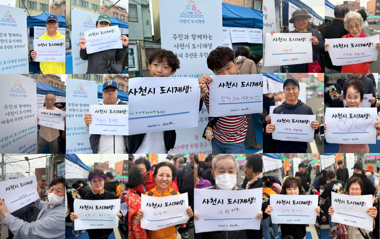 또한 현장에서는 방문객들이 도시재생사업 응원 문구를 작성한 뒤 사진을 촬영하거나, 사천시 도시재생지원센터의 페이스북을 팔로우 한 참여자에게 기념품을 증정하는 참여형 이벤트도 함께 진행하여 지역 주민들의 적극적인 참여와 호응을 이끌어냈다.