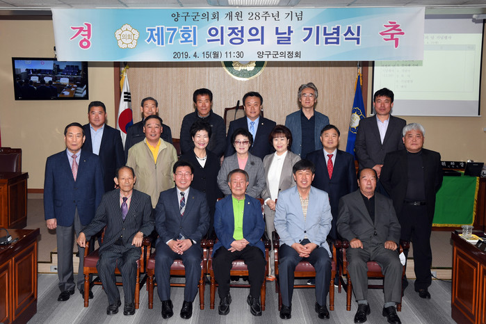 [양구군=세계타임즈 김민석 기자] 양구군의회 의정의 날(의정회장 여인명) 행사가 15일 의회 본회의장에서 조인묵 양구군수, 이상건 군의회의장, 의원, 의정회원, 직원들이 참석한 가운데 열렸다.