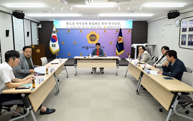 [세종 세계타임즈=이채봉 기자] 세종특별자치시의회(의장 이순열)는 6월 11일 의회청사 대회의실에서 ‘원도심 지역경제 활성화를 위한 연구모임(대표의원 김충식)’을 발족하고 연간 활동 계획 등을 논의하기 위한 첫 번째 간담회를 개최했다.