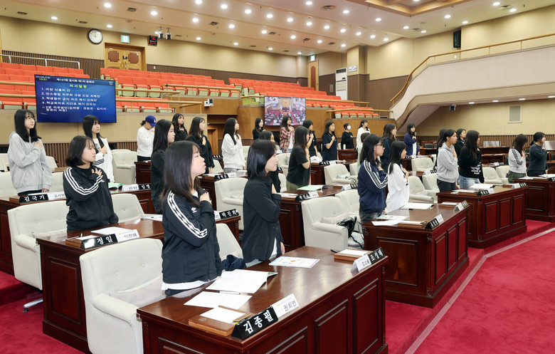 청소년 의회교실은 학생들이 1일 도의원이 되어 본회의장에서 의장 선거, 안건 처리, 2분 자유발언 등 의정활동을 체험하는 도의회 대표 학생 프로그램이다.