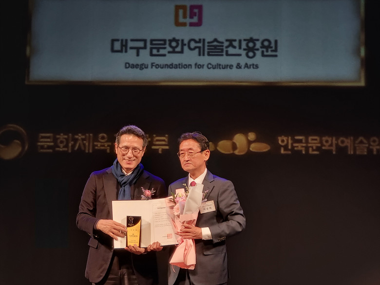 ▸ 대구문화예술진흥원 전국에서 유일하게 재인증 획득 [세계타임즈=대구 한윤석 기자] 대구문화예술진흥원(원장 ‘박순태’, 이하 ‘문예진흥원’)이 12월 4일(수) 서울 아르코예술극장 대극장에서 열린 ‘2024 문화예술후원매개단체 및 문화예술후원우수기관 인증식’에서 문화체육관광부가 인증하는 2024년 ‘문화예술후원매개단체(이하 ‘후원매개단체’)’재인증을 획득했다.