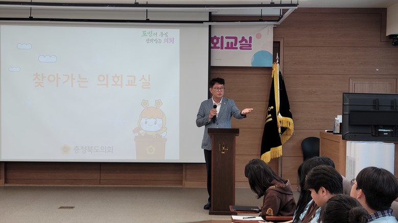 이날 의회교실에는 교육위원회 소속 이정범 의원(충주2)이 함께했다.