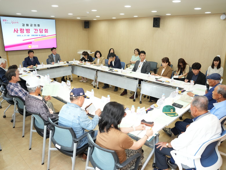 [강화군 세계타임즈=심하린 기자] 강화군의회(의장 한승희)는 지난 27일 강화군의회 세미나실에서 보훈단체협의회(14개 보훈단체별 회장)와 사랑방간담회를 개최하고 국가유공자 예우 확대를 위한 다양한 현안에 대해 논의했다.