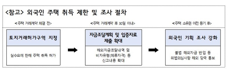 이상경 차관은 "이번 대책은 해외 자금 유입을 통한 외국인 투기 방지를 위한 것"이라며 "외국인의 시장 교란 행위를 원천적으로 차단하고 집값을 안정시켜 우리 국민의 주거복지에 기여할 것"이라고 말했다.