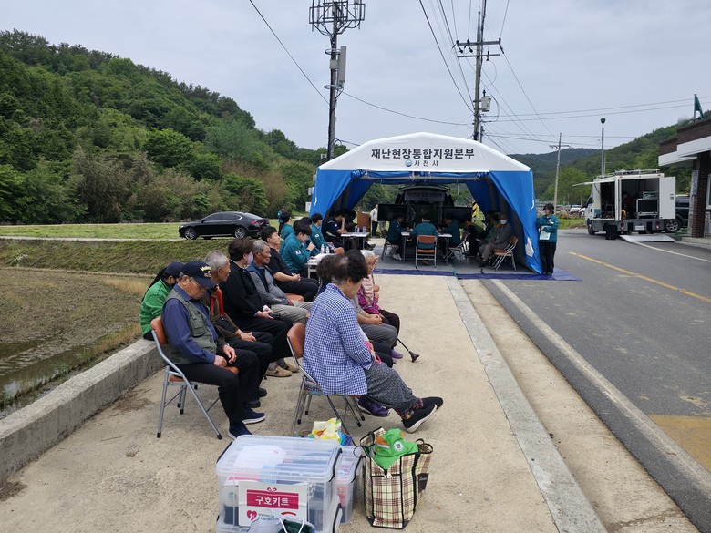 이번 훈련은 자연재난대책기간(5월 15일~10월 15일)을 맞아 실시한 모의훈련으로 여름철 집중호우 등 기상이변으로 인한 산사태 발생 상황을 가정하고, 위험지역 거주 주민의 실제 대피를 중심으로 진행됐다.