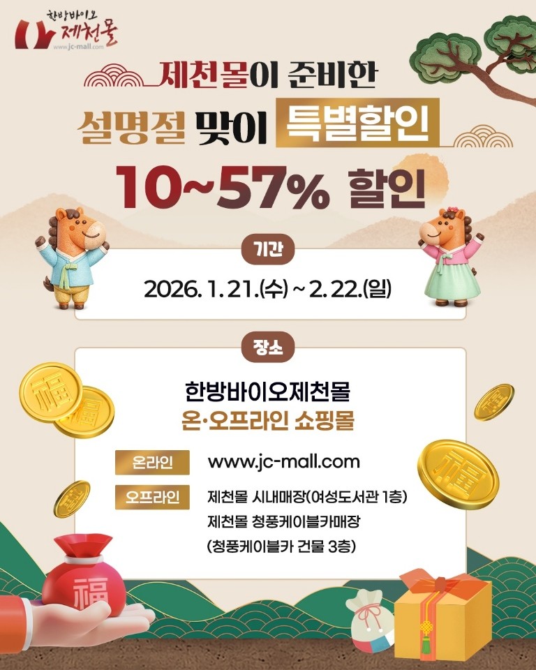 이번 행사는 1월 21일부터 2월 22일까지 한 달간 이어지며, 한방 건강식품과 전통 한약재, 명절 선물 세트 등 다양한 제품을 최대 57% 할인된 가격에 선보인다.