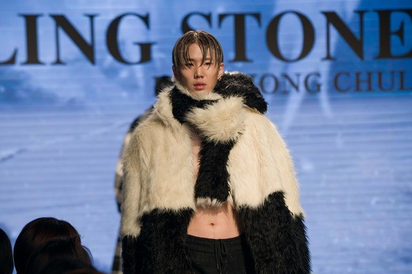 하이서울 패션쇼' 박종철 디자이너의 슬링스톤(Sling Stone) 패션쇼에서 모델 이영준이 '블랙' 의상으로 런웨이를 걷고 있다.