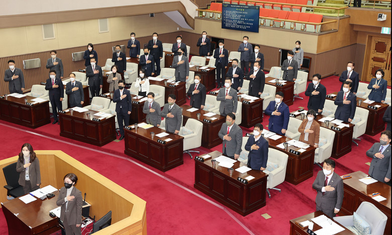 황영호 의장은 개회사를 통해 이태원 사고로 희생된 고인들의 명복을 빌고 유가족에게 애도를 표하며 “도와 교육청에서 각 분야별 재난.안전 대응 매뉴얼과 행동 요령, 관계기관과의 협업 체계 등을 총체적으로 재점검하여 안전사고가 재발하지 않기를 당부드린다.”며 안전사고에 대한 집행부의 역할을 강조했다. 이어 금번 회기 중 진행되는 2022년 행정사무감사와 관련하여 “도민이 체감할 수 있도록 합리적이고 효율적으로 진행돼야 하고, 대안이 될 수 있는 정책방향 제시가 있어야 한다.”며 내실 있는 행정사무감사를 주문했다.