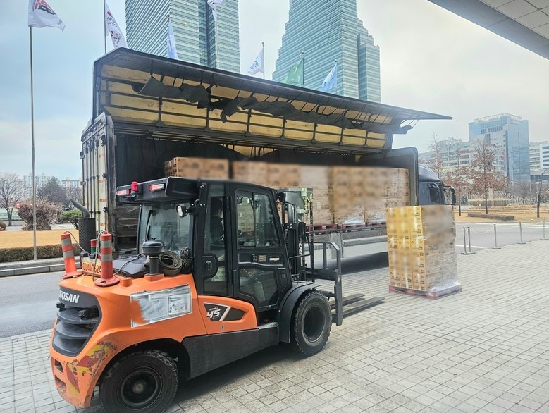 24일 시에 따르면, 기부기업은 이날 오전 10시 육가공·햄 선물세트 총 2만3천여 개를 안양시에 기탁했다. 기부물품이 안양시청 본관 앞마당으로 전달되는 데에만 대형차량 6대로 2시간여가 소요됐는데, 기부기업은 나눔의 뜻만 전해달라며 기업명 공개를 원치 않았다.