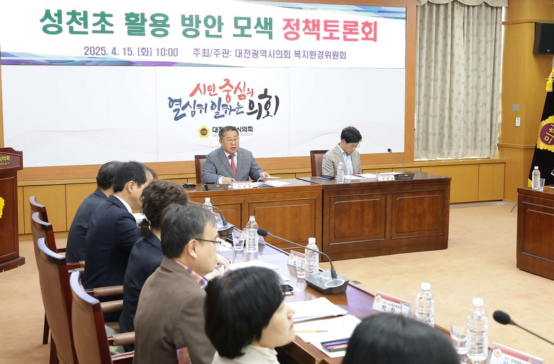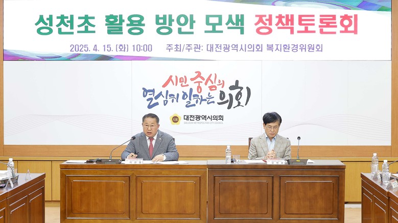 [대전 세계타임즈=이채봉 기자] 대전시의회는 15일 의회 소통실에서 이한영 의원(국민의힘, 서구6) 주재로 ‘성천초 활용 방안 모색 정책토론회'를 열고, 2027년 3월 폐교 예정인 대전성천초 부지를 지역 명품 복합공간으로 재탄생시키기 위한 방안을 논의했다.